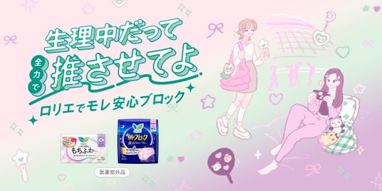 生理期間において「推しは癒し」と感じている一方で、生理中の推し活においては多くの人が不便さを感じているという実態を受け、ロリエは生理中でも全力で推し活をしたいひとを応援する特設サイト、「生理中だって全力で推させてよ ロリエでモレ安心ブロック!」を公開しました。