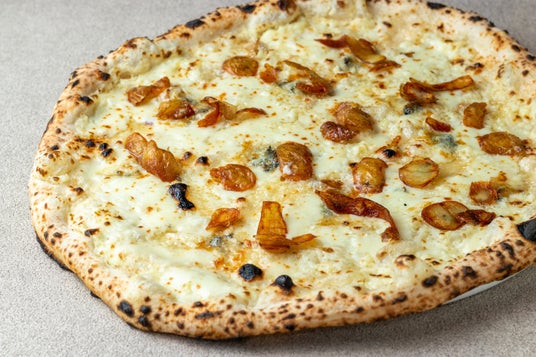 北海道産のきたあかりを使用したクリーミーなソースに、ゴルゴンゾーラやマスカルポーネなど4種類のチーズが絡み合う濃厚なピッツァ。食感豊かなきたあかりの皮と、濃厚なチーズの深い味わいが絶妙なバランスで広がり、一口ごとに満足感が広がります。
