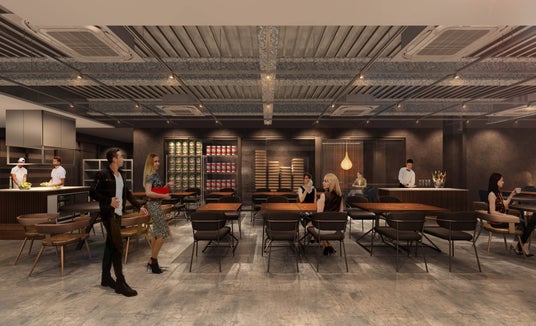 店内は、漆喰の壁とモルタルの床、スケルトン天井の構造を活かし、建物本来の力強さが際立つ、ファクトリーのような開放感あふれる空間に仕上げています。飴色のウッドテーブルや木製什器、そしてグレーの漆喰がバランスよく配置され、ラスティックな素材の手ざわりが、空間にあたたかなぬくもりを添えます。