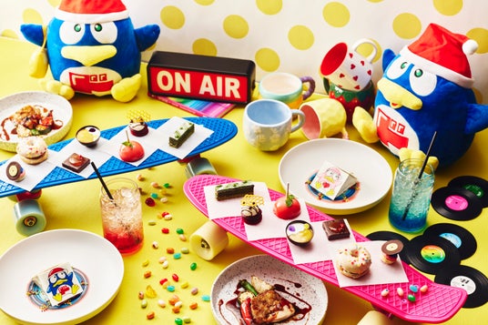 今回のアフタヌーンティーでは、ドン・キホーテのマスコットキャラクター「ドンペン」「ドンコ」をはじめ、同ブランドのポップでキャッチーなカラーやユーモラスな世界観を、渋谷のポップカルチャーを讃えるホテルインディゴ東京渋谷ならではの感性で表現します。ネイバーフッドストーリーを象徴する渋谷のレコード文化や、ドン・キホーテの人気商品などをモチーフに、フランス菓子のテクニックと現代ポップカルチャーを掛け合わせた、カラフルで遊び心溢れるスイーツをご用意いたします。