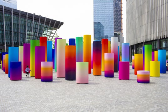 アダム・ナサニエル・ファーマンの 「A Forest of Delight(ア・フォレスト・オブ・ディライト)」は、円柱によるシンプルな構造体の集合によって構成されており、その高低差と鮮やかかつ大胆な色彩のコントラストが特徴です。作品は、都市の中心において一時的な「逃避」と「歓び」の感覚をもたらすことを意図しています。