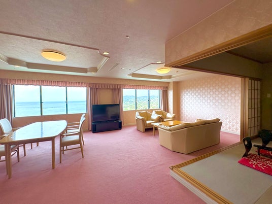 リビングスペースも広々。3世代での利用もお勧めです。(クラシックデラックススイートオーシャンビューイメージ)