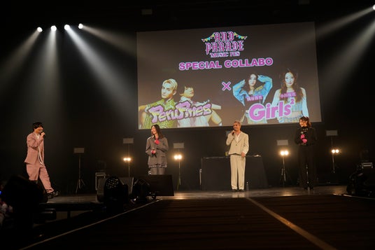 アイドルグループ「MyDresscode」が人気クリエイターユニットの夜のひと笑いとコラボ。夜のひと笑いの代表曲『ミライチズ』 を披露しました。夜のひと笑いの力強い歌声と、MyDresscodeの華やかでキレのあるダンスが完璧にシンクロし、ジャンルを超えた化学反応に会場は歓声に包まれました。