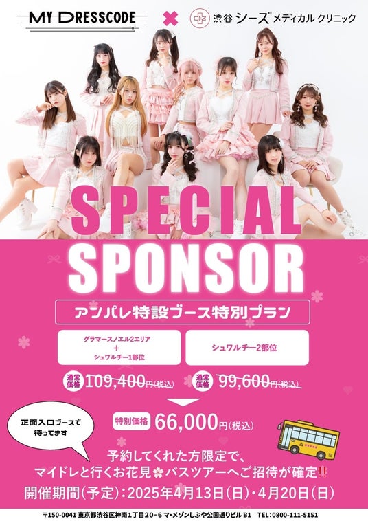 ステージでは、メインスポンサーである渋谷シーズメディカルクリニックとMyDresscodeのコラボによる「アンパレ特設ブース特別プラン」バスツアー招待企画が発表されました。