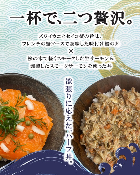 【新発売】北海道市場の海の幸を贅沢に味わい尽くす!『蟹まみれ&スモークサーモンのハーフ丼セット』&『ハスカップソフトクリーム』が登場!