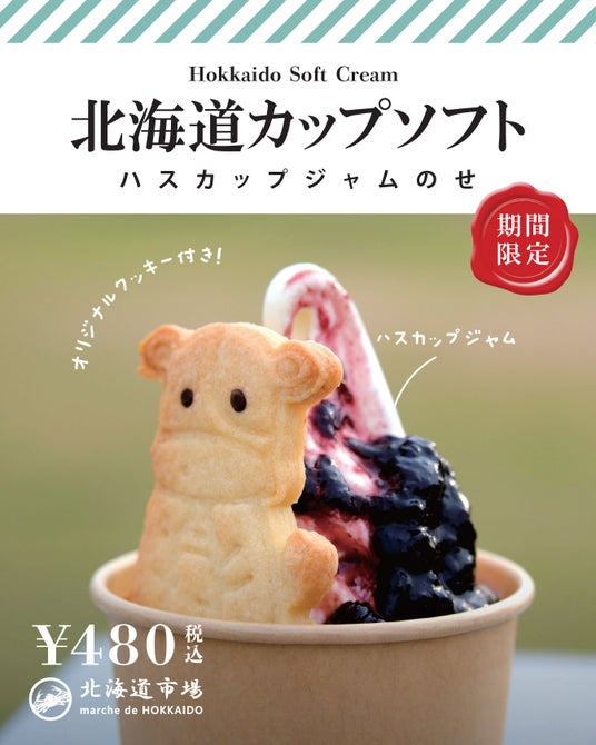 ハスカップソフトクリーム北海道産のハスカップゼリーを贅沢に使用した、爽やかな味わいのソフトクリームが登場しました。