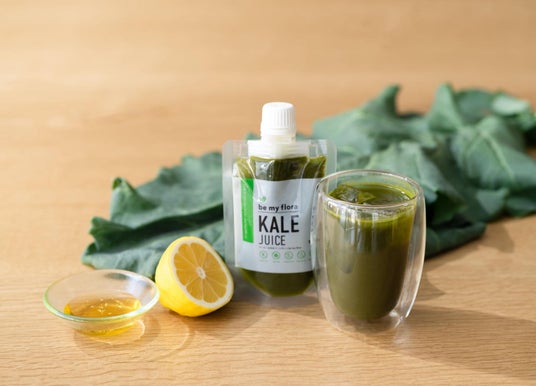 農薬不使用ケールにbe my flora とはちみつレモンを加え、優しく甘酸っぱい味わいに仕上げたコールドプレスジュースです。栄養素を壊さず丁寧に圧搾(コールドプレス)することで、素材本来の栄養が凝縮されており、体への負担が少ないのが特徴です。ケールは栄養価が高く野菜の原点と言われており、ビタミンE がキャベツの約24倍、β-カロテン 約60倍も含まれています。