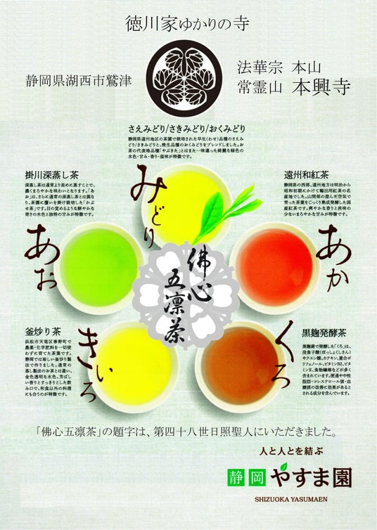 また今回は、静岡県湖西市にある本興寺にてご祈願いただき、徳川将軍家の葵の紋が印字された特別な「五凛茶 GO-RIN-CHA」を用意。当日ブースにて、お買い求めいただけます。