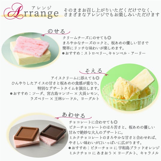 「パリッ、サクッ」とした食感と、儚い口溶けが特徴で、パリッと噛んだ後からフワッと香り、そして溶けていく、そんな新感覚をお楽しみください。