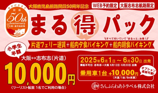 「大阪/鹿児島航路開設50周年記念 まる得パック」販売のお知らせ