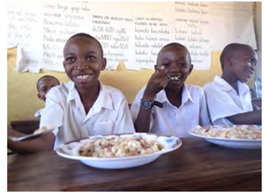 支援先(例):タンザニア ザンジバル諸島 / 給食を食べる子どもたち(写真 提供:TABLE FOR TWO)
