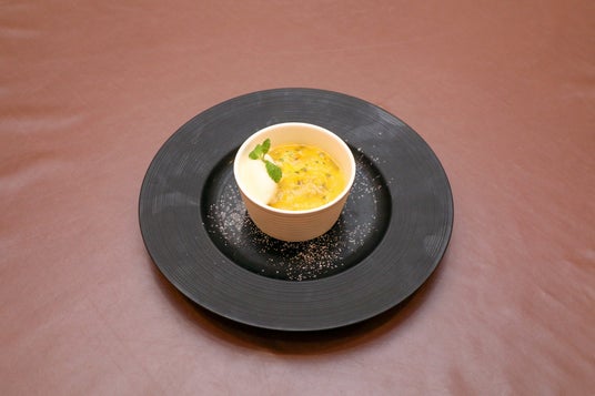 「イバラキングとパッションフルーツのゼリー マスカルポーネのムースと共に」