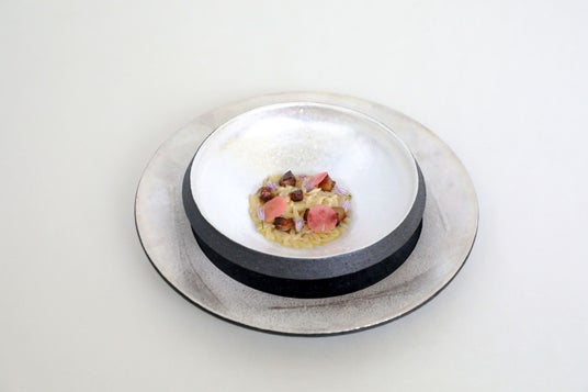 キノコの出汁で炊いたリゾーニというパスタや発酵させたラディッシュなどを合わせています。