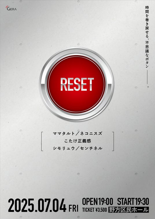 本ライブは「GERA」主催の企画ライブです。お笑いライブではありがちな、スベったり、やり直したいことが起きた時に、「数十秒だけ時間を巻き戻してリセットできる」というコンセプトの企画ライブとなります。何度もリセットをして、最高のライブに仕上げることができるのか、ぜひ注目してください。