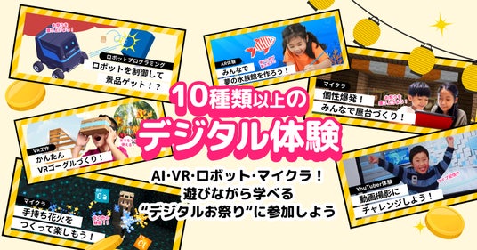 (5)内容:コンセプトは"デジタルのおまつり"。子どもが主役となり、マインクラフトやAI、映像制作、ロボットなどのテクノロジーを使って、様々な創造に取り組みます。楽しみながら地域とつながる探究プログラムや未来を切り拓く体験をたくさんご用意します。また、イベント内では、"独自通貨"が使用され、子どもたちが経済活動を体感できる仕組みを用意する予定です。