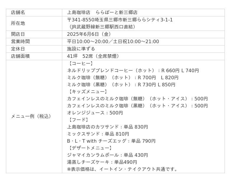 『上島珈琲店 ららぽーと新三郷店』概要