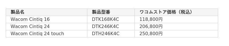 ・公式ワコムストア: https://estore.wacom.jp/ja-JP/category/pen-displays/wacom-cintiq.html