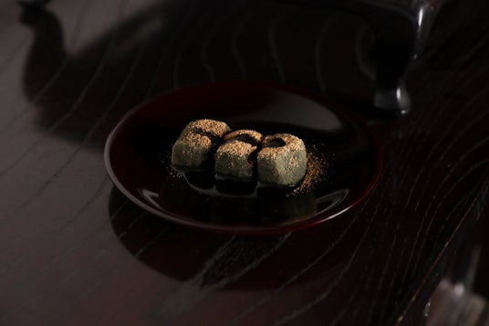 滋賀羽二重もちを使った3つのやわらかな蓬餅に、体づくりにも役立つ香ばしいきな粉(滋賀県産大豆使用)をまぶしています。のどに良いとされる、琉球和三盆糖使用の黒蜜をお好みでかけて、まろやかにお召し上がりください。