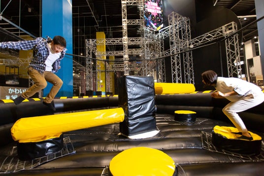 体を動かしながらまるでバラエティ番組に参加しているような新感覚のバラエティスポーツ体験ができる、屋内"ヤバすぎ"アクティビティ施設です。学生グループやファミリーのお客さまから、「全力ではしゃげる施設」と多くの支持を得ています。