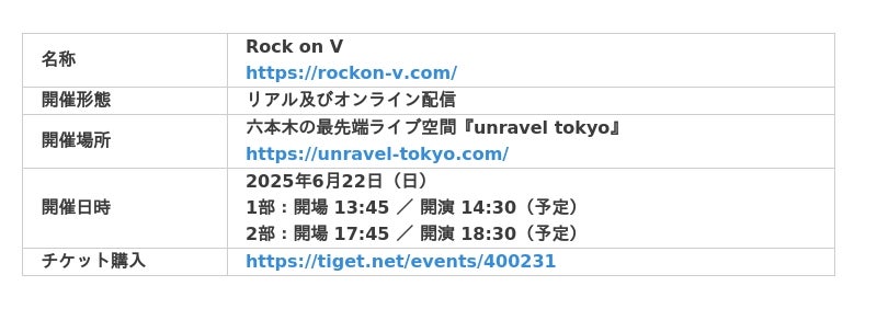 ▶ Rock on V公式サイト:https://rockon-v.com/
