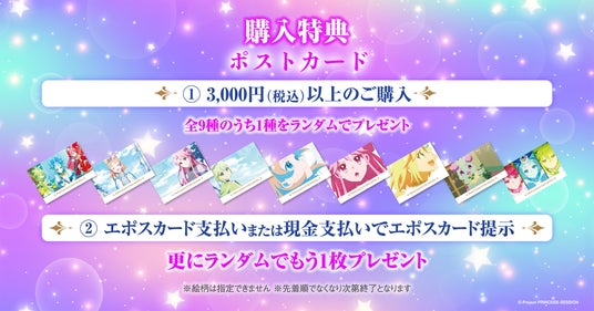 イベント期間中に1会計3,000円(税込)以上を購入された方には、オリジナルポストカード(全9種)をランダムで1枚、さらにエポスカードをご利用または提示された方にはもう1枚プレゼントいたします。