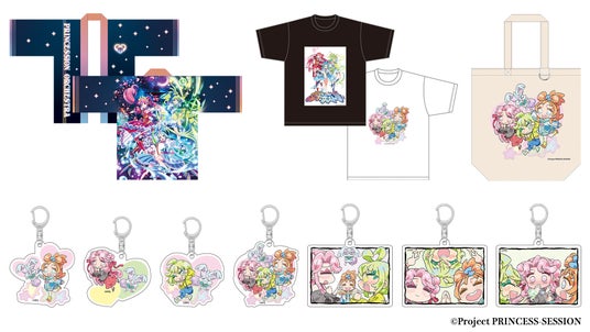 今回のポップアップショップは「全力応援ッ!」をコンセプトにしています。2025年8月3日(日)には『プリンセッション・オーケストラ』初のスペシャルイベント「プリンセッション・オーケストラ 1st EVENT「DREAM SESSION」の開催が予定されており、イベントの盛り上げにぴったりの歌姫法被やマフラータオルといった応援グッズの他、Tシャツや大型トートバッグなど、イベント参加時に身につけられるグッズを多数販売します。