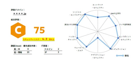 画像のように「A~F」の5段階で貴社のサイバーリスクを診断いたします。