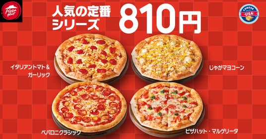 ※対象ピザ:「イタリアントマト&ガーリック」「じゃがマヨコーン」「ペパロニクラシック」「ピザハット・マルゲリータ」
