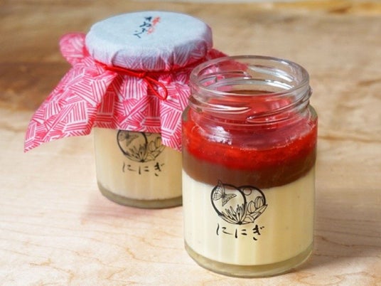 優しい甘さの濃厚なカスタードプリンに、なめらかなこし餡とゴロゴロ果肉の甘酸っぱい苺プレザーブをトッピングした3層仕立ての贅沢なプリンです。