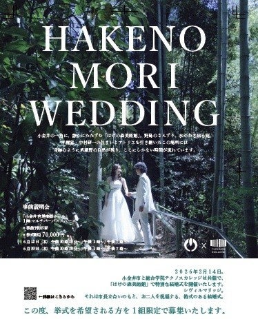 本プロジェクトは、ブライダル科の学生を中心に、学生ならではの自由な発想と感性を活かしながら、小金井市と協働して行うものです。挙式は2026年2月14日(土)を予定しており、当日に向けて、参加を希望する市民向けの事前説明会を2025年6月12日(木)・19日(木)の2週にわたり開催いたします。