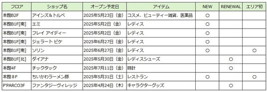 ■25年春NEW&RENEWAL OPEN SHOPリスト