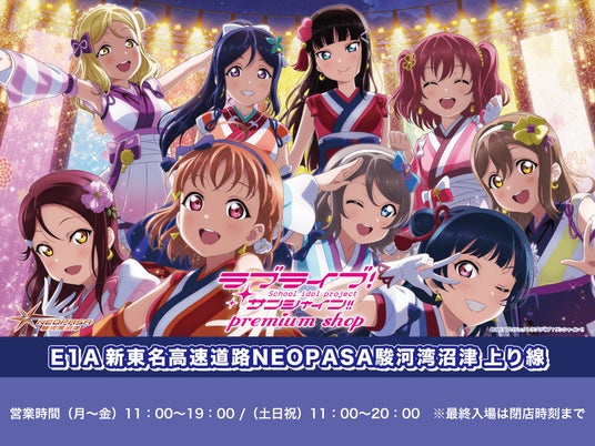 中日本エクシス株式会社駿河支店(静岡県沼津市、支店長 望月(もちづき)邦裕(くにひろ))と株式会社Up Fields(本社:/東京都渋谷、代表取締役社長:上田(うえだ)太郎(たろう))は、E1A新東名高速道路(新東名) NEOPASA(ネオパーサ)駿河湾沼津(上り、静岡県沼津市根古屋)で「ラブライブ!サンシャイン!!&幻日のヨハネ プレミアムショップ」を2025年6月13日(金)から2025年8月17日(日)の期間限定でオープンします。