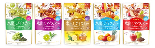 1992年に発売したロングセラーの当シリーズは、品質にこだわり、過熱水蒸気による気流式殺菌を施した水出し用の茶葉を使用。大容量タンブラーなどにもぴったりの500mL用で、すっきりとした紅茶の香りと様々なフレーバーのアイスティーがいつでもどこでもお楽しみいただけます。