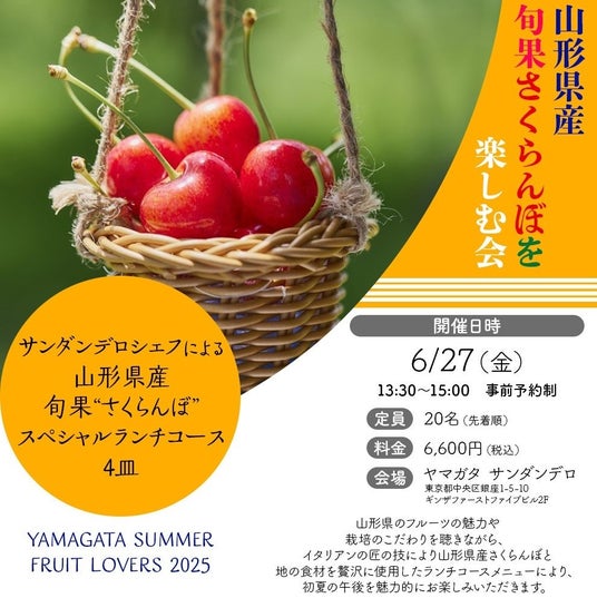 この度、豊洲市場を拠点とし日本中の果物を販売する「豊洲市場ドットコム」は山形県産さくらんぼの魅力を伝える一環として『YAMAGATA Summer Fruit Lovers 2025 山形県産夏フルーツを楽しむ会』を開催します。お問い合わせは、株式会社 食文化へ https://www.shokubunka.co.jp/contact/日時:2025年6月27日 金曜日 13:30~15:00