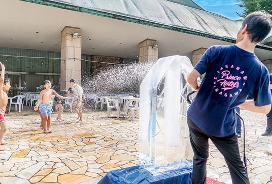 「ダイヤモンドプール」にて、真夏の暑さを忘れ冷たい氷を楽しむイベントを今年も開催いたします。世界大会での優勝経験を持つホテルの氷彫刻師が手掛けた氷のオブジェたちをプールへダイブさせ、ひんやり気持ち良い氷とともに涼やかなひとときを演出。氷彫刻を仕上げるダイナミックなパフォーマンスを目の前でお楽しみいただけるほか、氷彫刻への色づけ体験など、夏の思い出となる氷で遊べるコンテンツをご用意いたします。