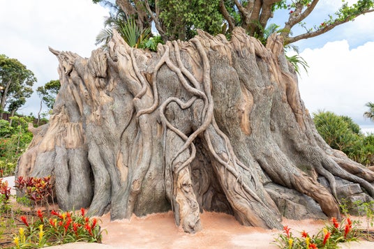 枝から地上に向けて多数の気根を伸ばすことで有名なガジュマルは、時を重ねるごとに根が大地とつながり、やがて一本の幹となって広がっていきます。ジャングリア ツリーに植えられたガジュマルはまだ若く、気根が顔を出していませんが、パークとともに時を重ね、多くのゲストを見守る大樹へと成長してくれるでしょう。