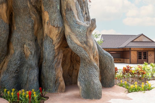 エントランスの小道を抜けた先でゲストを待ち受けるのが、パークのシンボルとなる ジャングリアツリー。この樹木には「内からあふれ出す力強さ」「どんな環境でも生えぬく生命力」が込められており、パークを訪れたゲストに驚きと感動をお届けします。