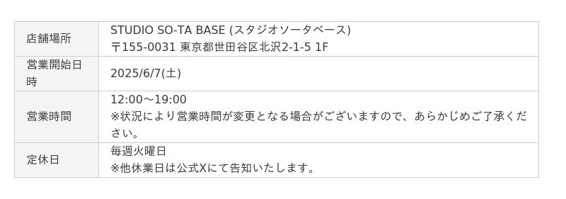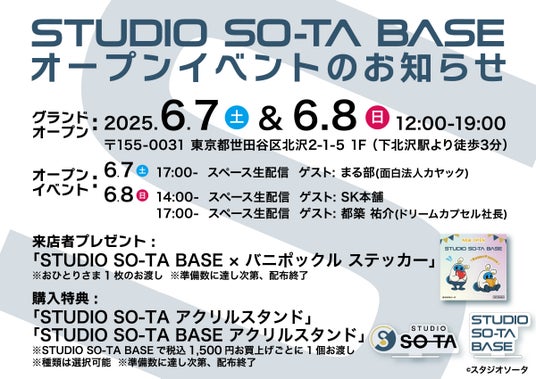 【STUDIO SO-TA BASE】東京・下北沢にスタジオソータの旗艦店が2025年6月7日(土)12:00 グランドオープン!