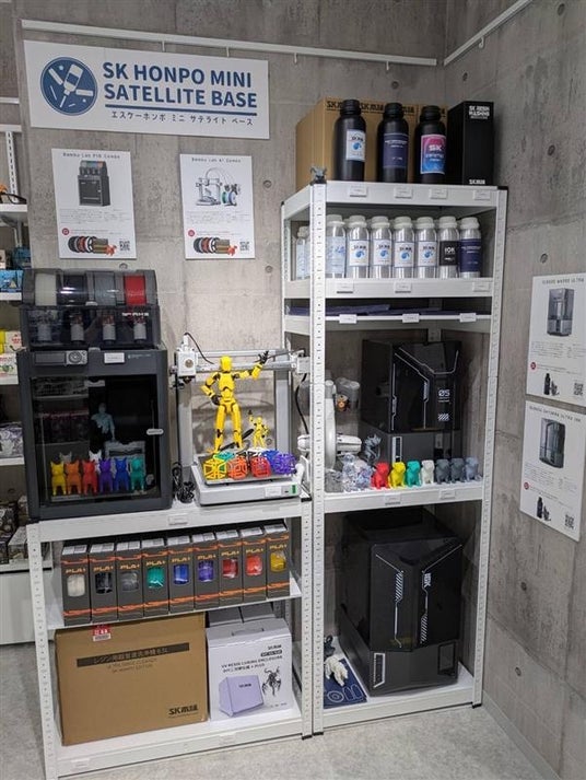 SK本舗の3Dプリンターショールームを設置。実際に見て触れることができます。