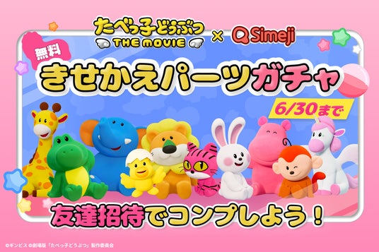 Z世代に大人気!キーボードアプリ「Simeji」、映画『たべっ子どうぶつ THE MOVIE』とのコラボ第2弾!無料ガチャキャンペーンを開催!