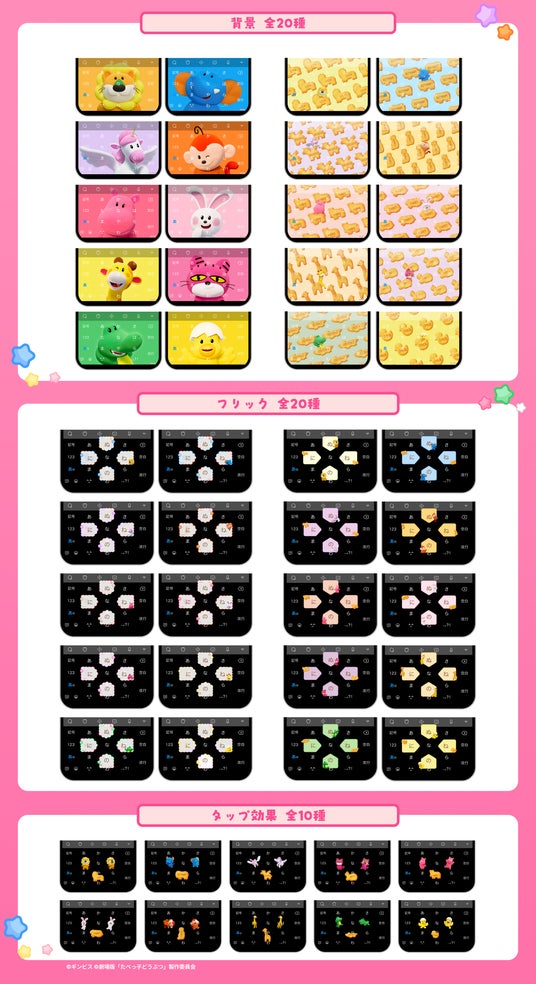 ※背景20種、フリック20種、タップ効果10種 計50種となります。