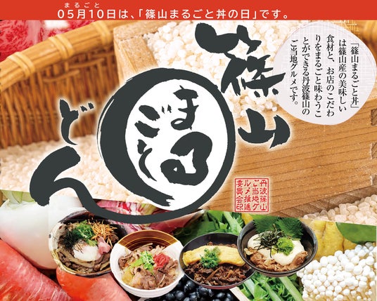 「篠山まるごと丼」は篠山産の美味しい食材と、お店のこだわりをまるごと味わうことができる丹波篠山のご当地グルメです。市内の各店舗にて丹波篠山をまるごと味わえます。また、05月10日(まるごと)は、「篠山まるごと丼」の日です。この日と、冬には丹波篠山市内全域の幼少中学校の給食メニューになっています。