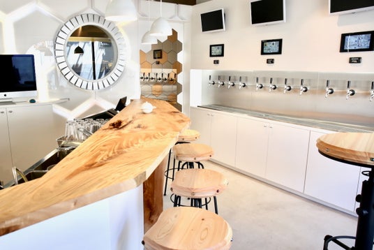 近未来を感じさせるスタイリッシュな空間には、最新のセルフビアタップシステムを導入しておりますので、注いだ分だけお支払いいただくスタイルで、気になるビールを少しずつ試すことも、自分好みの一杯をじっくり味わうことも可能です。