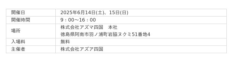 6月14日(土)、15(日) 株式会社アズマ四国 感謝祭2025開催!