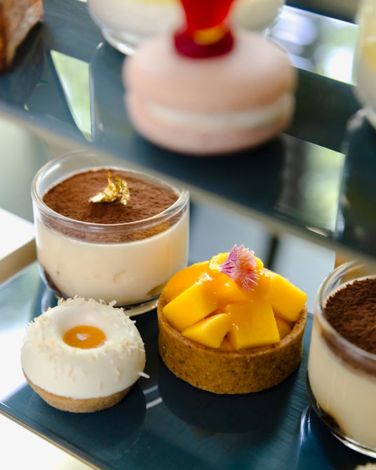 スパイシーな生地にココナッツムースとアプリコットソースを重ねた、リゾート感漂う一品。