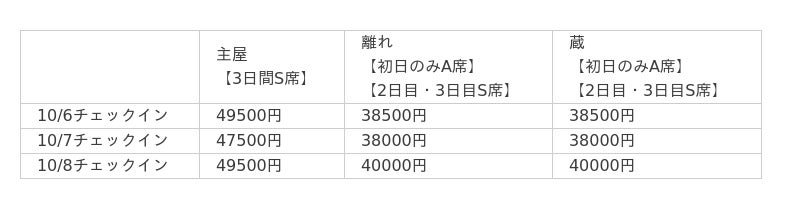 【ご宿泊料金(1泊2食・長崎くんち観覧桝席付・2名様宿泊プランでおひとり様あたり)】