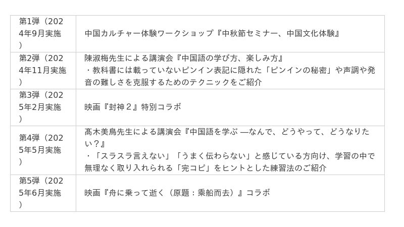 ■ハオ中国語アカデミー開校20周年記念企画 過去実施一覧