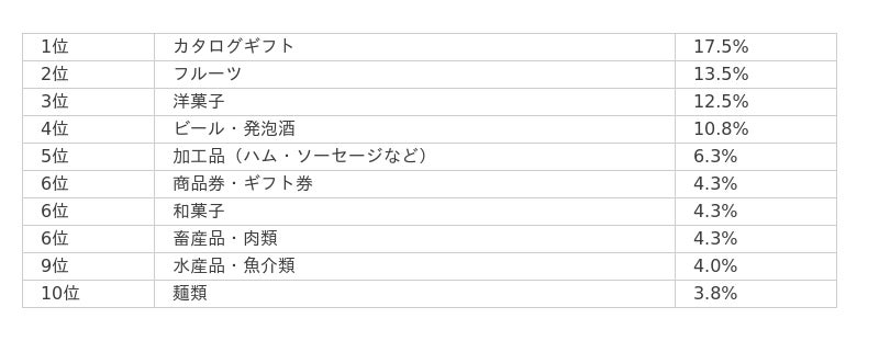 順位の変動はあったものの、1位から5位にランクインしたものは昨年と変わりがないことから、いずれもお中元の定番ギフトと言えそうです。