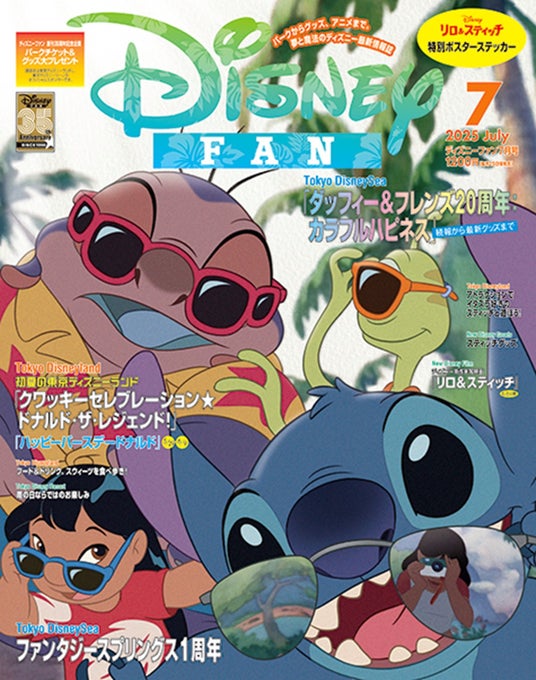 月刊「ディズニーファン」7月号 好評発売中! 初夏の東京ディズニーリゾート(R)の情報が満載! ファンタジースプリングス1周年、ダッフィー&フレンズ20周年特集も充実。そしてディズニー映画「リロ&スティッチ」最新情報にも注目!