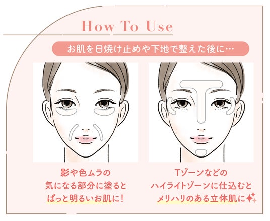 顔の凹凸影をカバーしてお肌をぱっと明るくし、メリハリのある立体肌に仕上がるホワイト。あえて肌色を拾う透け感のあるホワイトに調整することで、白浮きすることなく、お肌にすっと溶け込みます。